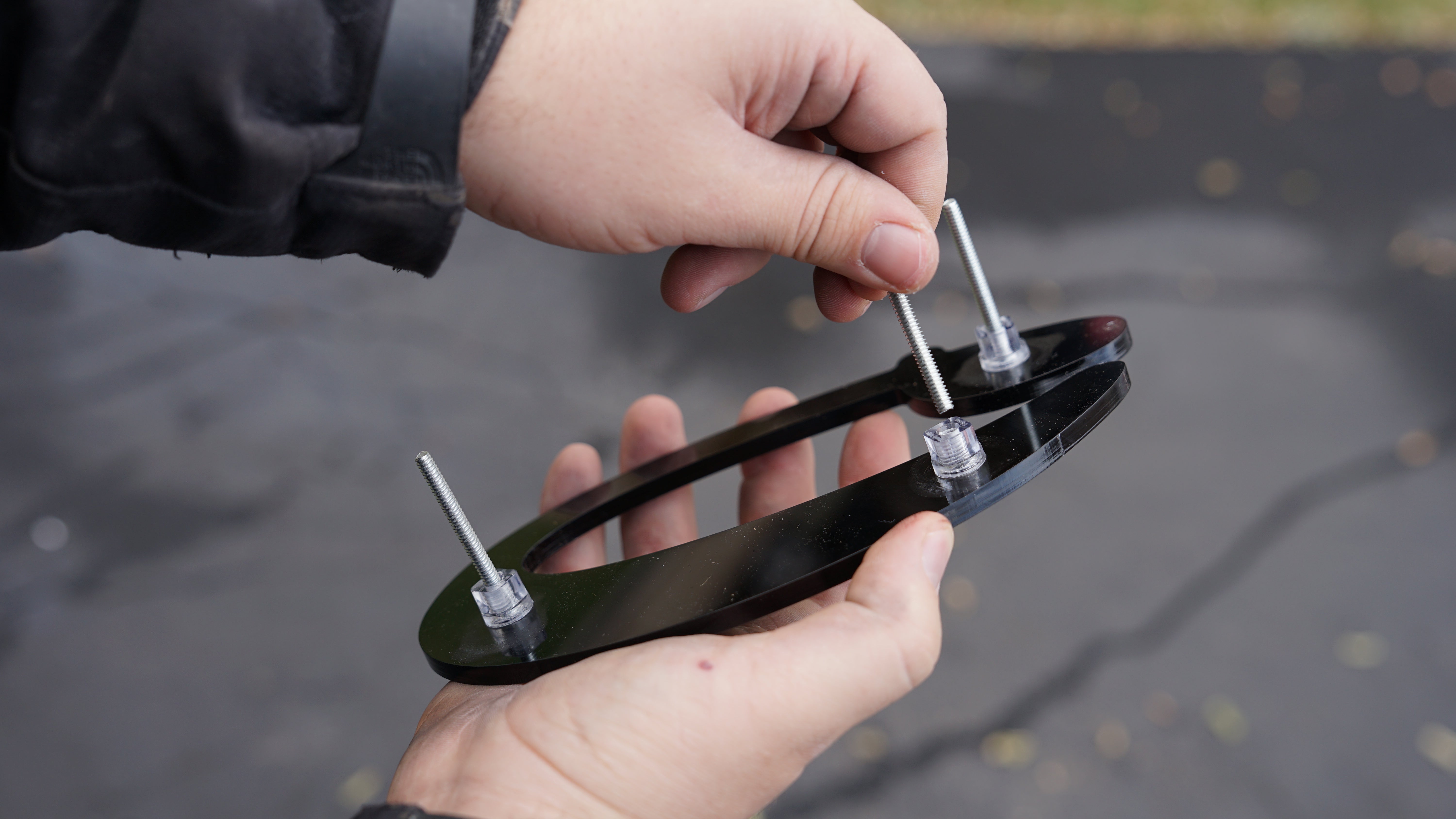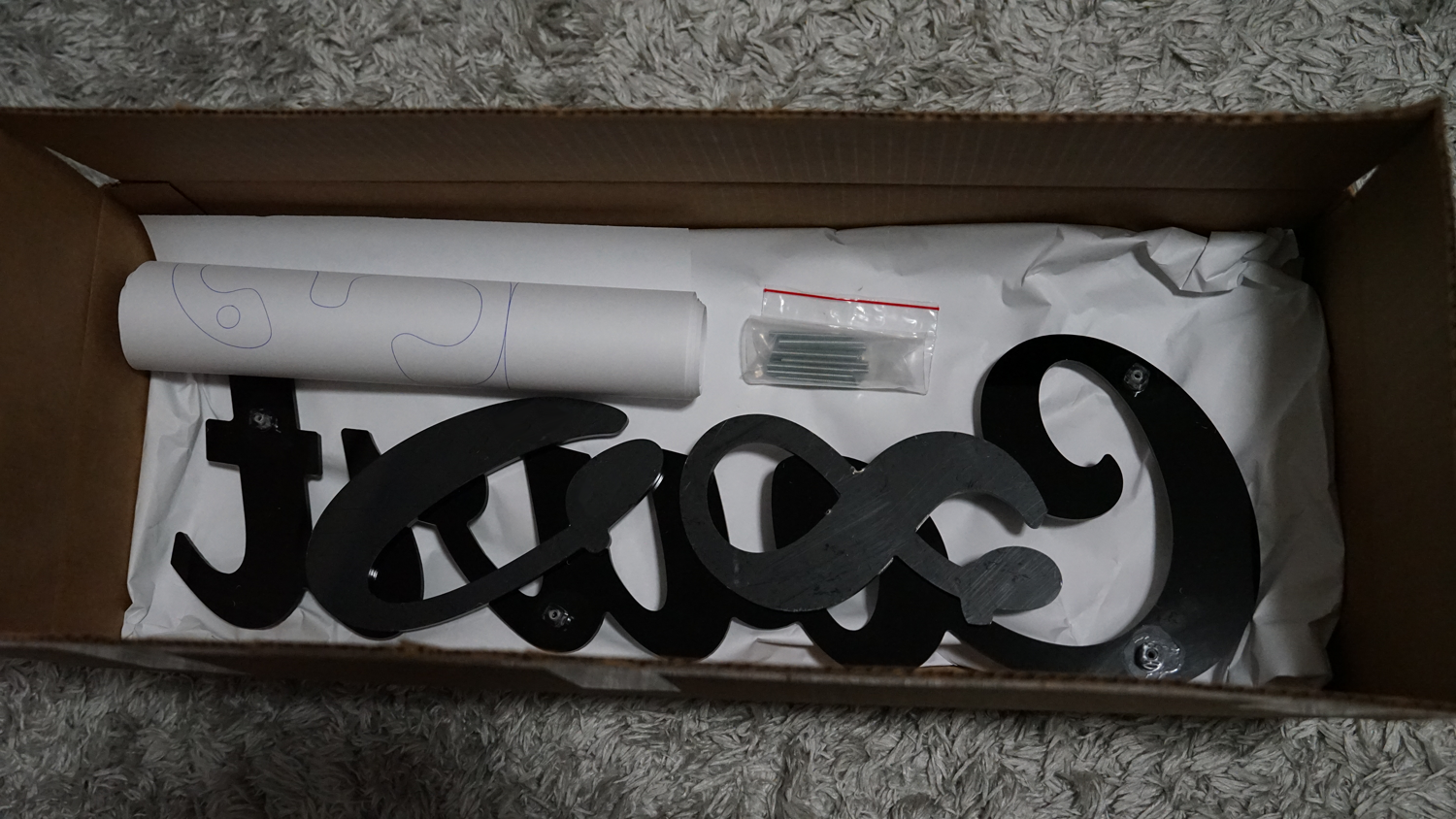 Twist in the provided threaded rods into the mounted spacers on the back of the letters. Use pliers if needed